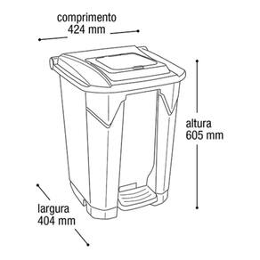 2 lixeiras 60l preta com roda/pedal lixo grande reforçada O kit contém: - 2 lixeiras reciclável 60 litros c/roda pedal tampa click preta - arqplast Lixeira com roda e pedal tampa click 60 litros recicláveis preta arqplast Estes cestos com pedal são produzidos em polipropileno de alta resistência e design arrojado, são indicados para áreas internas e externas de edifícios comerciais, áreas laboratoriais, hospitalares e alimentícias e até residências. Sua tampa com sistema de abertura e fechamento através de pedal promove a vedação do coletor evitando a dispersão de odores e a entrada de insetos, além de evitar os riscos de contaminação. são produzidas de acordo com as mais rigorosas normas da vigilância sanitária, trazendo segurança, confiabilidade e durabilidade aos seus compradores, com a de ser o melhor produto do mercado em sua categoria. nformações gerais: Com tampa articulável com pedal Tampa click Rodinhas traseiras Leve e prático para transporte. Lixeira para produtos recicláveis. dimensões: comprimento: 42,4cm Largura: 40,4cm Altura: 60,5cm Marca: Não Informado