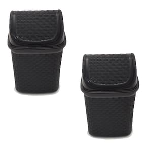 2 Lixeiras De Pia Prática Preta Tampa Basculante Rattan 4,5L