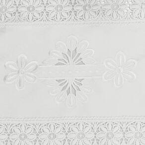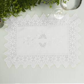 Feito com renda de Guipir no mesmo tom, o Lugar Americano Argivai Piquet Blanc Branco é trabalhado de forma delicada e moderna, podendo ser utilizado como lugar americano, toalha de bandeja ou na decoração da casa de diversas outras formas.