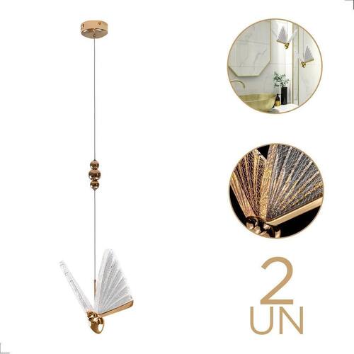 2 pendente moderno luminaria borboleta libelula gold bivolt 3000k Tendência decorativa para 2023, essa luminária moderna e contemporânea oferece um design luxuoso único, Sendo indicado pelos arquitetos para ambientes comerciais e residenciais.