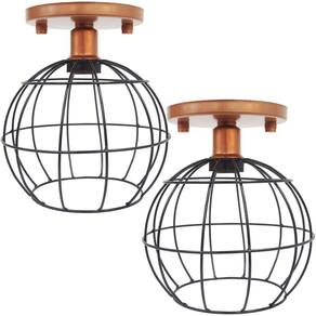 2 Lustres Teto Plafon Industrial Aramado Globo Retrô Luminária Sobrepor Vintage Agp Ilumini - Cor: Cobre Rose Gold/Preto