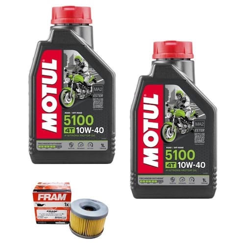 Fotos ilustrativas Acompanha Itens inclusos: 02 litros de oleo - 01 filtro de oleo fram Aplicação: kawasaki ninja 250 Para os anos: todos os modelo kawasaki ninja 250 que no manual indique 4 tempos sae 10w-40 api sm sl jaso ma2 Marca: motul - fram Modelo: oleo motul 5100 semissintetico 4 tempos sae 10w-40 api sm sl jaso ma2 - fram 6012 Conselhos de utilização Intervalo de troca: conforme recomendação do fabricante e adaptável à severidade do uso. Troca: conforme recomendação do fabricante da moto e/ou adaptável à severidade de uso. Imagem meramente ilustrativas Marca: Não Informado
