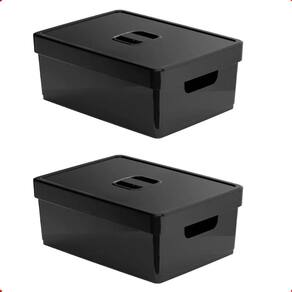 2 organizador de armário grande preta com tampa 35x26x14 cm Caixa organizadora g com tampa preta