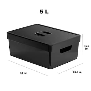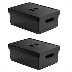 2 organizador de armário grande preta com tampa 35x26x14 cm Caixa organizadora g com tampa preta