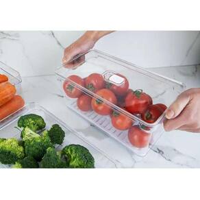 2 Organizadores De Geladeira 5l Porta Frutas Clear Fresh Ou Cor: Branco e Natural SELLERSKU F6038 MAPLE DECOR Kit 2 Organizadores De Geladeira 5L Porta Frutas Legumes Vegetais Com Respiradouro Clear Fresh OU. organizadores De Geladeira Com Respiradouro E Bandeja De Drenagem caixas De Armazenamento Para Legumes Saladas E Frutas conjunto Linha Clear Fresh OU Garantia: 90 dias / Peso: 1,05Kg / Cores: Natural e Branco / Ref: OF300NTX2 Dimensões De Cada Organizador: 30cm C x 15cm L x 13cm A Dimensões Área De Uso De Cada Organizador: 28m C x 14cm L x 12,5cm A Capacidade De Cada Organizador: 5 Litros. Conteúdo: 02 Organizadores de Geladeira. Limpeza e Cuidados: - Lavar com água e sabão neutro utilizando esponja macia, seguido de pano seco; - Não utilizar produtos químicos ou abrasivos na limpeza. Evitar batidas. Detalhes dos Produtos: - Possuem bandejas de drenagem que evitam que os alimentos fiquem molhados e os mantem longe das paredes externas, permitindo o fluxo de ar; - Possuem respiradouros reguláveis que permitem ventilação e elimina os gases produzidos pelos alimentos, evitando decomposição precoce; - Não suportam máquina de lavar; - Não suportam micro-ondas; - Livres de Bisphenol A; - Não suportam freezer; - Suportam geladeira; - Empilháveis. Material: - Polipropileno: Alta resistência a impactos e ao calor. Não transfere odor, nem gosto aos alimentos. Atóxico, pode entrar em contato com alimentos. Resistência à água fervente, suportando até 150 C; - Poliestireno: Translúcido com baixa resistência a impactos. Ótima transparência e alto brilho. Não transfere odor, nem gosto aos alimentos. Atóxico, pode entrar em contato com alimentos. Leve mais frescor para o seu dia a dia na cozinha com o Conjunto de 2 Organizadores de Geladeira 5 litros Empilháveis da linha Clear Fresh. Os porta frutas e legumes possuem diversas funções para melhorar a conservação dos alimentos e trazer mais frescor para a geladeira, tais como: o sistema de ventilação e umidade controlada pelo respiradouro e sua bandeja de drenagem que evita ressecamento e deterioração precoce dos alimentos, permitindo o fluxo de ar para todos os cantos. Confeccionadas em material de alta qualidade e livre de BPA, as caixas organizadoras retangulares de plástico são perfeitas para armazenar legumes, frutas e verduras na geladeira e por seres transparentes, permitem que você visualize o conteúdo armazenado com facilidade.