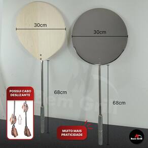 Medidas: - Pá inox 30 cm com cabo de 68cm, total aprox. 105cm - Pá Madeira Caxeta 30 cm com cabo de 68cm, total aprox. 105cm