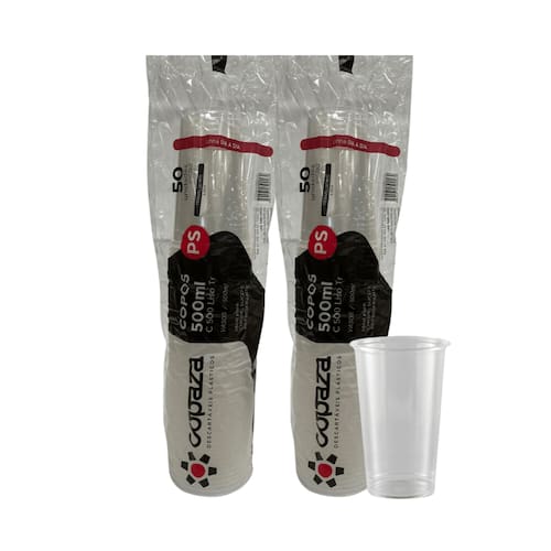 2 Pacotes de Copo de 500ml Liso Translúcido ABNT 2002 Copaza com 50 unidades