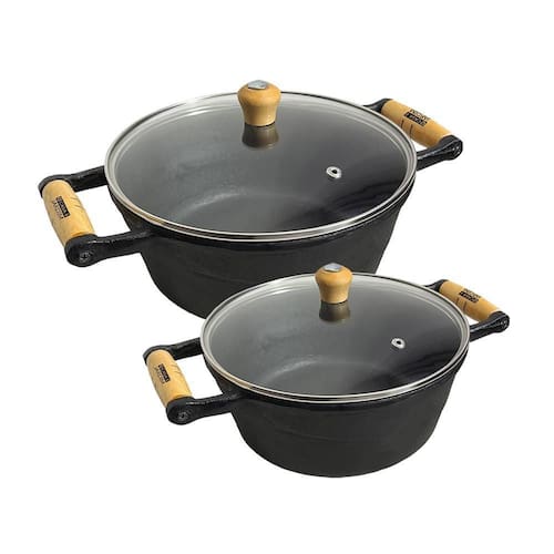2 Panela de Ferro Caçarola Indução Alça Madeira Tampa Vidro Ideal para Arroz, frango, feijão e etc. A panela de ferro Casa e Jardim apresenta uma grande versatilidade onde elas fornecem suplementação de ferro para o organismo, não liberam toxinas nos alimentos. Tendo uma resistência duradoura cozinhando os alimentos por muito tempo. Todas as panelas de ferro do modelo caçarola podem ser utilizadas em todos os tipos de fogão a gás, a lenha, elétrico e também em cooktop de indução.