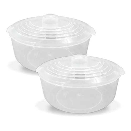 Conjunto de 2 panelas multiuso para micro-ondas, ideal para preparo de arroz, legumes e pipoca. Possui função manter aquecido e desligamento automático.Lâmpada piloto