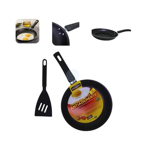 Contém: 2 frigideira antiaderente + 1 espátula de plástico