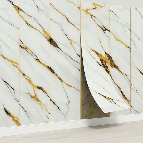 Design: Estampa realista de mármore, sem divisórias visíveis, para um acabamento contínuo.