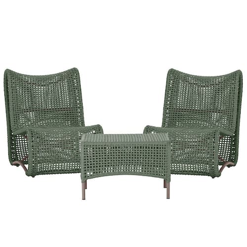 2 Poltrona e Mesa Texas em Alumínio Trama - Verde Musgo