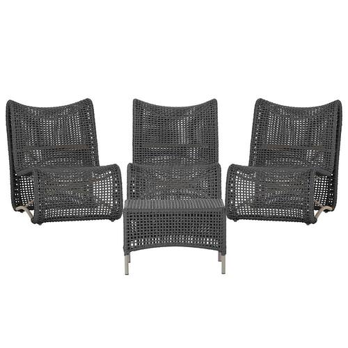 2 Poltrona e Mesa Texas em Alumínio Trama - Preto