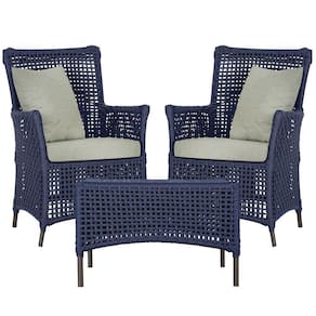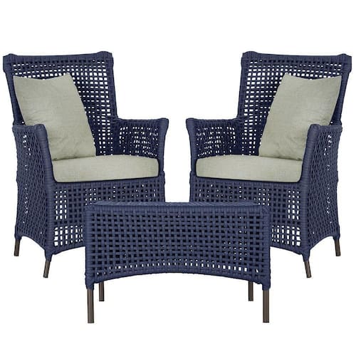 2 Poltronas 1 Mesa Igapó Em Alumínio Marrom Corda Náutica E3 Azul