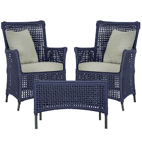 2 Poltronas 1 Mesa Igapó Em Alumínio Preta Corda Náutica E3 Azul