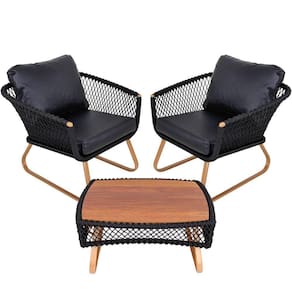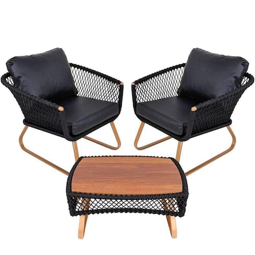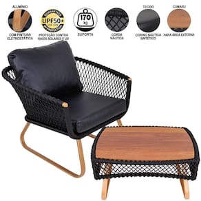 2 Poltronas com Mesa Tampo em Madeira Cumaru Milão em Alumínio, Corda Náutica e Assento Estofado Trama