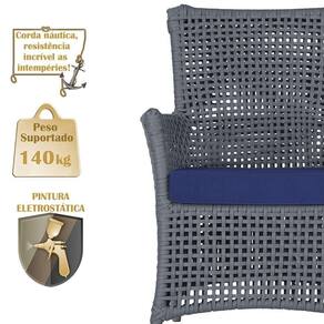 A corda nautica adiciona um toque de rusticidade moderna, enquanto o estofado impermeavel garante que sua poltrona esteja sempre impecavel, mesmo apos uma chuva inesperada ou um acidente com liquidos.