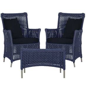 2 Poltronas E 1 Mesa Igapó Alumínio Fendi Corda Náutica E12 Azul