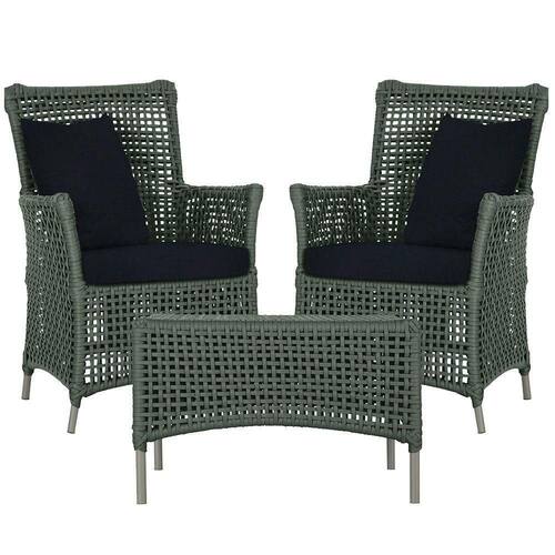2 Poltronas E 1 Mesa Igapó Alumínio Fendi Corda Náutica E12 Verde