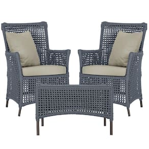 2 Poltronas E 1 Mesa Igapó Alumínio Marrom Corda Náutica E7 Prata