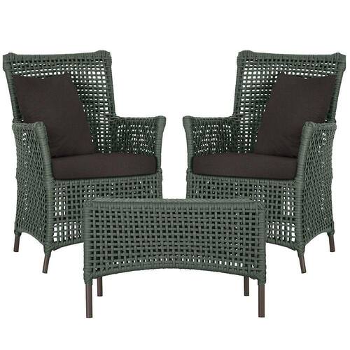 2 Poltronas E 1 Mesa Igapó Alumínio Marrom Corda Náutica E9 Verde