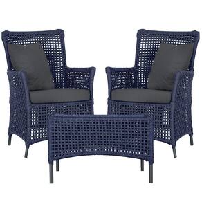 2 Poltronas E 1 Mesa Igapó Alumínio Preta Corda Náutica E11 Azul