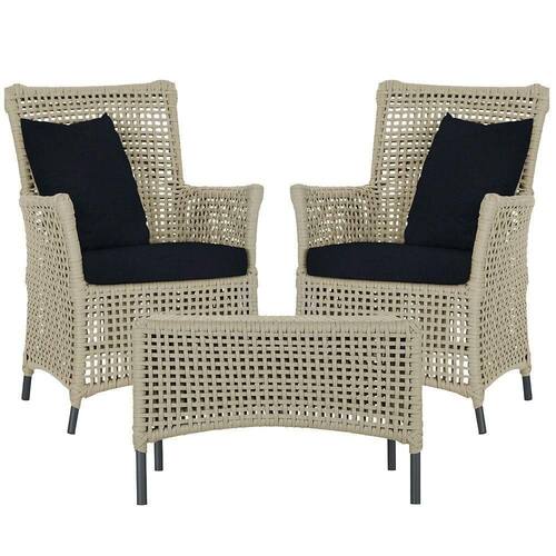 Itens Inclusos: 02 Poltronas e 01 Mesa Igapo em Aluminio Pintura Preta Corda Nautica Estofado 12