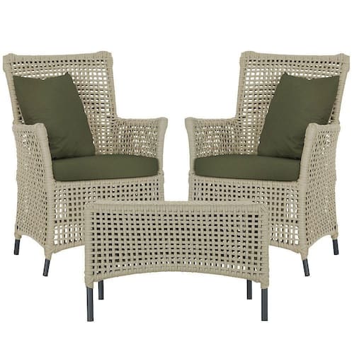 A corda nautica adiciona um toque de rusticidade moderna, enquanto o estofado impermeavel garante que sua poltrona esteja sempre impecavel, mesmo apos uma chuva inesperada ou um acidente com liquidos.