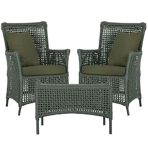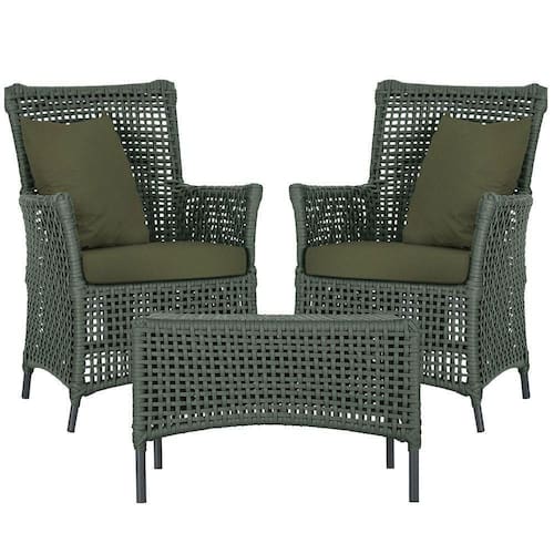 2 Poltronas E 1 Mesa Igapó Alumínio Preta Corda Náutica E13 Verde