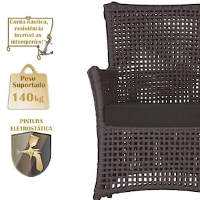 A corda nautica adiciona um toque de rusticidade moderna, enquanto o estofado impermeavel garante que sua poltrona esteja sempre impecavel, mesmo apos uma chuva inesperada ou um acidente com liquidos.