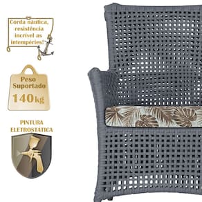 A corda náutica adiciona um toque de rusticidade moderna, enquanto o estofado impermeável garante que sua poltrona esteja sempre impecável, mesmo após uma chuva inesperada ou um acidente com líquidos.