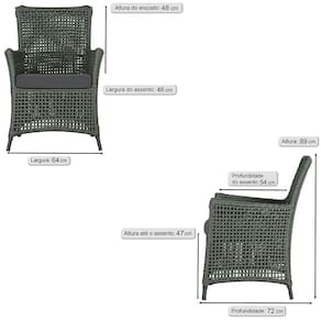 Itens Inclusos: 02 Poltronas e 01 Mesa Igapó em Alumínio Pintura Preta Corda Náutica Estofado 11