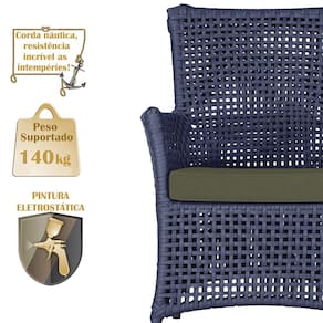 Produto conhecido como: Poltrona Igapó, Poltrona de alumínio, Corda náutica, Estofado impermeável, Móveis de exterior, Poltrona resistente à água, Design moderno em poltrona, Poltrona para área externa, Poltrona de jardim, Móveis para varanda, Poltrona durável, Poltrona de alta qualidade, Conforto em poltrona, Poltrona elegante.