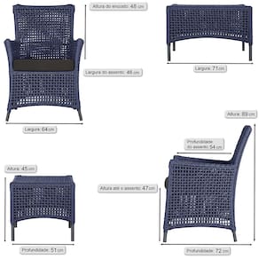 Itens Inclusos: 02 Poltronas e 01 Mesa Igapó em Alumínio Pintura Preta Corda Náutica Estofado 9