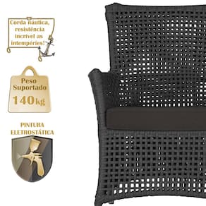 2 Poltronas e 1 Mesa Igapó em Alumínio - Preto