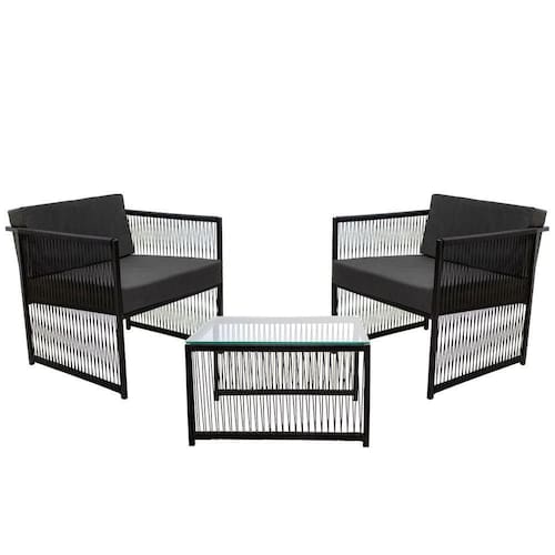 2 Poltronas com 1 Mesa de Centro Santiago em Fio de Fibra Sintética e Ferro com Pintura Eletrostática Panero Móveis.