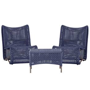 2 Poltronas E Mesa Texas Alumínio Marrom Corda Náutica Trama Azul
