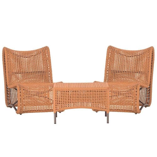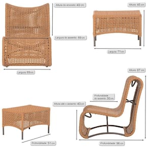 2 Poltronas E Mesa Texas Alumínio Marrom Corda Náutica Trama Terra Cota
