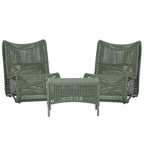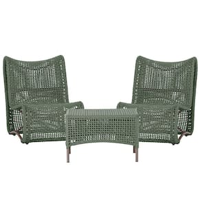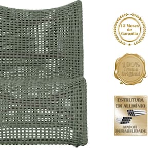 2 Poltronas E Mesa Texas Alumínio Marrom Corda Náutica Trama Verde