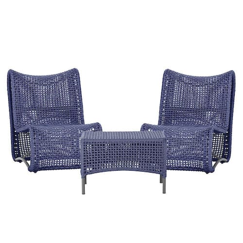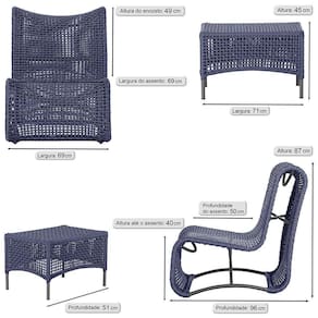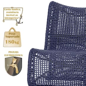 2 Poltronas E Mesa Texas Alumínio Preto Corda Náutica Trama Azul