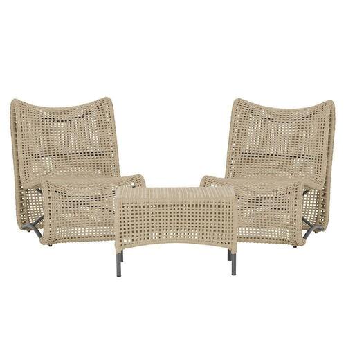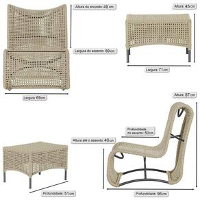 2 Poltronas E Mesa Texas Alumínio Preto Corda Náutica Trama Rami