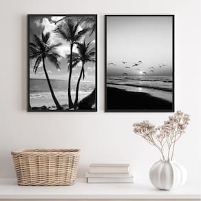 O Kit 2 Quadros Decorativos Praia Preto E Branco 24X18Cm é perfeito para decorar diversos ambientes, como quarto, sala, cozinha, escritório, área gourmet e muito mais. Com medidas de 24x18cm A5 , cada peça é feita com moldura de madeira preta, proporcionando um acabamento elegante e sofisticado.