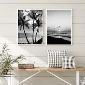 Kit 2 Quadros Decorativos Praia Preto E Branco 24X18Cm