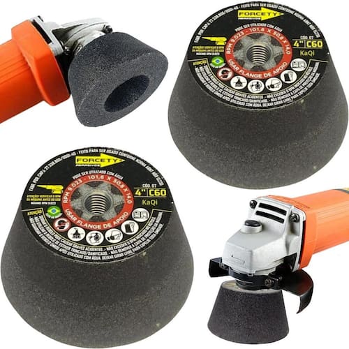 2 rebolos copo cônico 4 polegadas grão 120 rosca m14 mármore porcelanato granito forcety 2 rebolos copo cônico 4 polegadas grão 120 rosca m14 forcety. Rotação máxima 9023 rpm. Medidas 10,16cm x 5,08cm. Para trabalhos a seco ou refrigerados com água. Indicado para desbastes, retificações, acabamentos e boleamentos. O rebolo copo cônico 10x5cm grão 120 forcety é ideal para desbastes, retificações, boleamentos e acabamentos em mármores, granitos, ardósias, porcelanatos, granilites, cerâmicas, entre diversos outros materiais rochosos. Projetado para oferecer eficiência, durabilidade, confiabilidade e resultados excepcionais, é perfeito para profissionais e entusiastas de reformas e construções. Não à toa, é o rebolo número 1 das marmorarias, azulejistas e oficinas de todo brasil O rebolo cônico 4 polegadas forcety é fabricado com diamantes industriais premium e carbeto de silício sic , uma cerâmica fina sintética e semicondutora que se destaca em uma ampla gama de artigos do mercado industrial. Conta com a qualidade e a de fábrica forcety, empresa brasileira, a qual tem como compromisso, a excelência e qualidade na fabricação de seus produtos. Proporciona assim, não apenas um desempenho eficaz, mas também, a confiança no respaldo de uma marca brasileira, reconhecida em todo território nacional. A rosca do rebolo forcety segue no padrão universal m14, a qual permite uma fácil e simples instalação em lixadeiras, esmerilhadeiras e politrizes. Basta rosquear e a instalação está concluída. Caso seja utilizada em conjunto com um adaptador pino m14 não incluso é possível conectar também em furadeiras e parafusadeiras. Em alguns lugares é chamado de pé de burro, ou ainda, de copo cônico de desbaste. O nome varia de acordo com a região do brasil. Independente do nome, só uma certeza: o rebolo forcety é versátil e poderoso corrige imperfeições do corte, arredonda bordas, faz boleamentos, remove arestas vivas e cria acabamentos suaves. Pode trabalhar a seco ou refrigerado a água, o que proporciona um processo mais rápido, sem gerar calor excessivo. Dessa forma, seja no desbaste, no boleamento ou no polimento, o rebolo forcety é a melhor opção. Benefícios: 1. Versatilidade: utilização em ampla variedade de materiais rochosos. Atende ao mais diversos projetos. 2. Desempenho superior e inigualável: o carbeto de silício com diamantes garante um desempenho de desbaste inigualável e duradouro. 3. Fácil adaptação: rosca padrão m14 com compatibilidade universal às mais diversas lixadeiras, esmerilhadeiras, politrizes, elétricas ou pneumáticas, entre outras máquina com conexão m14. 4. de fábrica: respaldado e de fábrica forcety, o que proporciona tranquilidade, comodidade e segurança. Especificações: 2 rebolos copo cônico 4 polegadas m14 grão 120. Trabalho: a seco ou refrigerado com água. Diâmetro: 4 polegadas 100mm 10,16cm x altura 5,08cm. Velocidade: 9023rpm. Rosca: m14. Material: carbeto de silício sic com diamantes. Feito para ser conforme norma abnt nbr 15230. Peso unitário: 0,55kg. Medidas unitário: 10 x 10 x 5cm. Marca: forcety. : 3 meses. Recomendações importantes antes do uso: Verificar se o rebolo está bem fixo ao equipamento; Verificar se a seta indicativa do disco coincide com o sentido de giro do equipamento; Desbaste sem forçar muito o rebolo e aplique força só conforme a necessidade; Utilizar preferencialmente em bases fixas; Compatível com as principais marcas de ferramentas do mercado. Utilize sempre epi para trabalhos com mais segurança. Confira o grão desejado, antes de concluir a compra. Não fazemos alterações posteriores em pedidos. Imagens do anúncio são ilustrativas.