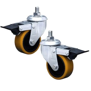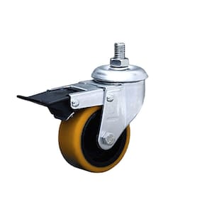 Roda Giratória 3" polegadas industrial serie 12 com espiga de 1/2" e freio tipo Easy lock leve e macio, Uma linha de produtos reforçados com excelente custo-benefício indicado também para uso industrial, pois, possui resistente a ambientes mais severos, com roda ferro, revestida em poliuretano, com capacidade de carga de 170 kg cada roda, proporcionando trabalho silencioso com descolamento inicial suave e proteção ao piso. Aplicação Rodízios giratório 3" polegadas Colson, ideal para cargas leves de até 170 kg por roda, em móveis e acessórios de utilidades para o comercio, indústrias e centros logísticos. Composição Banda em poliuretano (amarelo) moldado de alta qualidade sobre núcleo de ferro fundido, furo passante com bucha separadora 5/16. Dureza 95 Shore A (-40C a 80C). Garfo: Em aço com 2,65 mm de espessura, acabamento zincado branco e dupla pista de esfera. Características técnicas: Diâmetro da roda (pol): 3" (76,20 mm) Largura da banda da roda: 1.1/4" ( 32 mm) Espiga: 1/2" x 1" de comprimento, acompanha parafuso Com freio Easy lock Comprimento do cubo (mm): 38 mm Altura total (mm): 108 mm Diâmetro do eixo: 5/16 polegadas Capacidade de carga (kg): 170 kg por roda Dureza: 95 shore Material: PU - Poliuretano Temperatura de trabalho: -40 a 90 Cor: Amarelo indicado: concreto liso, asfalto, cerâmica, aço, metal, madeira, Proteção ao piso, trabalho silencioso, água, contato ocasionado com o vapor, óleo industrial, tração manual.