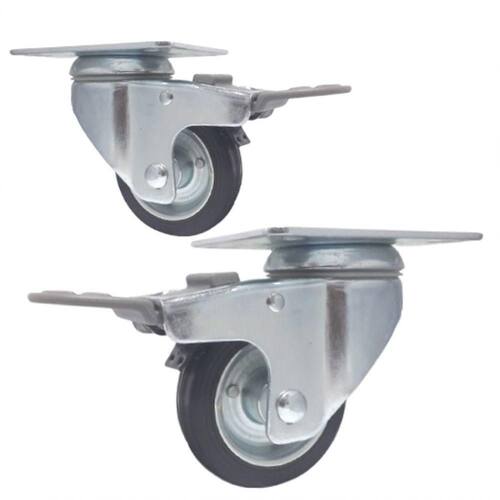 2 Rodizio Borracha Giratório 3 Pol. Placa C/ Freio Rolamento RoleteRodízios giratório com rodas de borracha garfo dupla pista de esfera, em aço zincado 3,0 mm, com rolamento tipo rolete com freio total trava o giro do garfo e o giro da roda, design inovador, com núcleo chapa aço estampado, banda de rodagem em borracha, indicado para cargas leves e média.Os benefícios das rodas de borrachas são diversos, entre eles podemos destacar: a Resistencia e a facilidade de manobras no transporte, asrodas de borracha maciça são ótimas para locomoção de cargas, leve, medias e pesadas. Isso, porque auxilia na diminuição o esforço empregado na movimentação, como também aumenta a estabilidade. Quer seja para carrinhos de carga ou rolamento, optar por seu é vantajoso.Características técnicas:Diâmetro da roda (pol): 3 polegadas 75 mmPlaca giratória: 105 X 80 MMCom freio total: SIMLargura da banda da roda : 22 mmTipo de rodagem: rolamento roleteAltura total (mm): 107 mmCapacidade de carga (kg): 50 kgMaterial: borrachaTemperatura de trabalho: -20 a 70indicado: concreto liso, asfalto e cerâmico Marca: TOP OPÇÕES