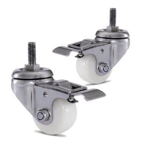 2 Rodízio giratório aço inox 2 polegadas com espiga com trava freio, estrutura em aço inox , com dupla pista de esferas, proporciona altíssima resistência à corrosão, Resistência a produtos químicos e agressivos, e muita facilidade para manobras. Indicado para aplicações diversas, incluindo altas temperaturas até 100C. com rodas em nylon 100% puro de alto desempenho. Características técnicas: Diâmetro da roda (pol): 2 polegadas - 50,80 mm todo em aço inox: AISI 304 Freio com dupla função: trava giro trava roda Espiga: 3/8 X 1 pol. Largura da banda da roda : 24 mm Raio de giro do rodízio (mm): 55 mm Altura total (mm): 75 mm Rodagem furo passante Capacidade de carga (kg): 50 kg Dureza: 75 shore Temperatura de trabalho: -10 a 100 indicado: concreto liso, cerâmica, aço, metal, madeira, Proteção ao piso, trabalho silencioso, água, contato ocasionado com o vapor, cavacos metálico, óleo industrial, álcool, tração manual.