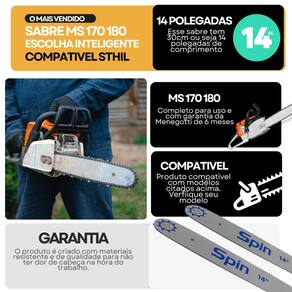 2 Sabre 14 com Ponta Rolante - 3/8 x 1.1 mm - 25 Dentes - Compatível com Stihl MS170/MS180 Sabre de 14 polegadas com ponta rolante, desenvolvido para motosserras leves, ideal para cortes precisos em madeira, podas e trabalhos gerais. Conta com 25 dentes, passo de 3/8 e canal de 1.1 mm 0.043 , oferecendo menor atrito, maior durabilidade e melhor desempenho de corte. Compatível com as motosserras Stihl MS 170, MS 180 e modelos similares.