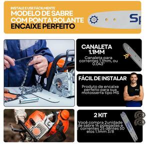 2 Kit Sabre 14 + 2 Corrente 3/8 x 1.1 mm - 25 Dentes / 50 Elos - Compatível com Stihl MS170 MS180
