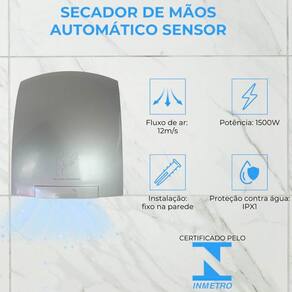 Secador De Mãos Automático Sensor 12M/S 1500W, os secadores de mãos automáticos são dispositivos práticos e higiênicos utilizados para secar as mãos rapidamente em banheiros públicos ou privados. Eles servem para: eficiência energética, higiene, sustentabilidade, conveniência. Além disso, são considerados uma opção mais econômica a longo prazo, pois eliminam a necessidade constante de reabastecimento de papel e manutenção relacionada.